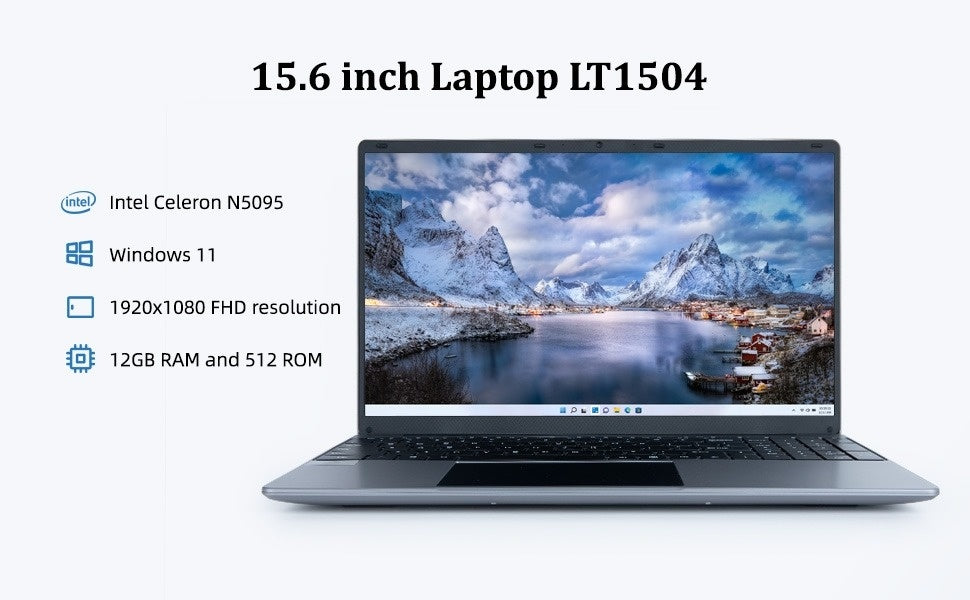 15.6"" Laptop, Intel Celeron N5095, 12GB RAM, 512GB SSD, FHD Display, Windows 11, Numeric Keypad"