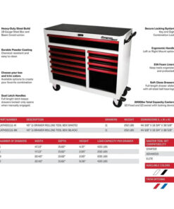 The 45″ Pro Series Loaded Tool Box Combo is meticulously designed for professional mechanics, technicians, and homeowners who value quality, style, and functionality. The toolbox features a sturdy 18-gauge spot-welded steel construction with gusset-reinforced corners, full-length beam supports, and multiple spot welds for exceptional durability. Durable powder coat paint is applied to the interior and exterior surfaces to prevent scratching and offers a long-lasting life.